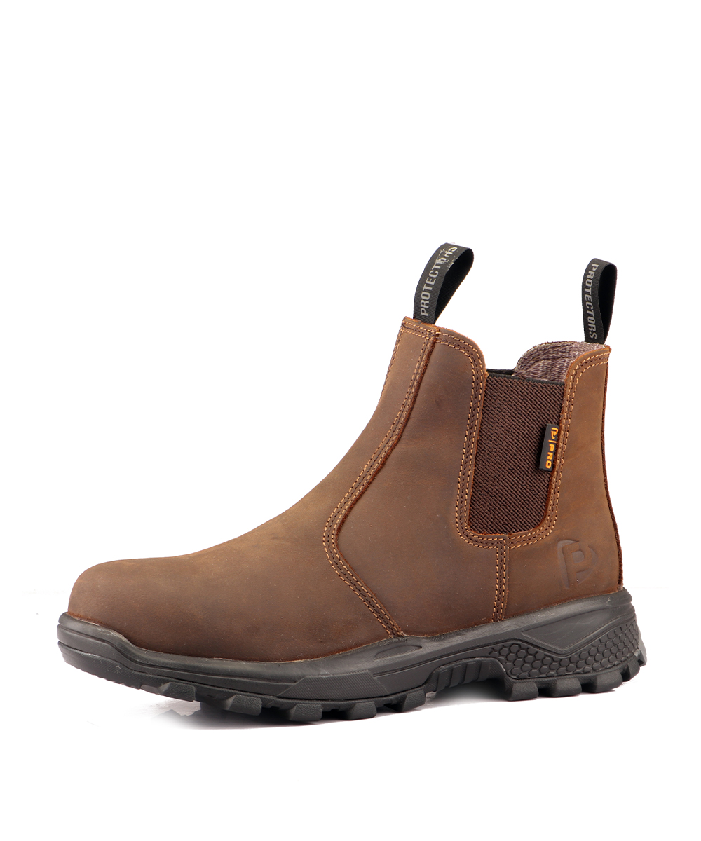 • A lightweight, metal-free safety dealer boot with water resistant naked crazy horse leather upper